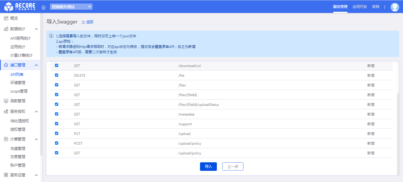 通过swagger导入API增加预检功能,在导入前系统判断该API是否录入过。