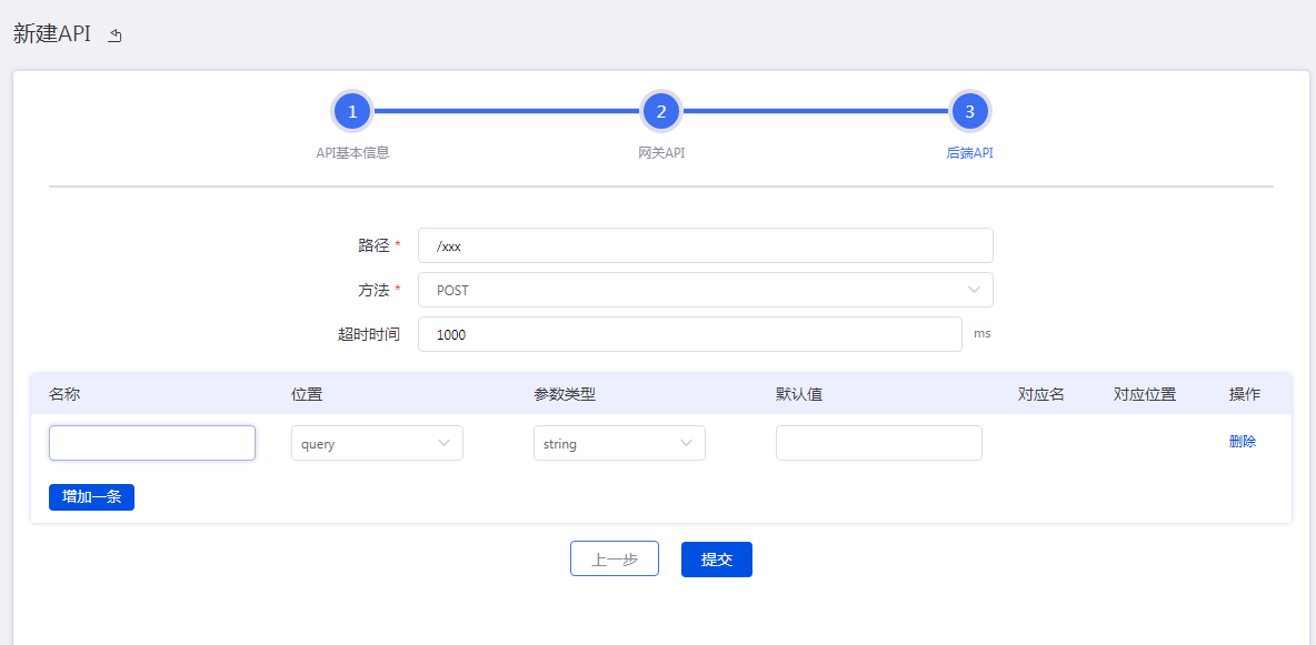 1)环境注册——创建服务环境。完成API类型信息提交后,系统默认进入到API管理-环境管理配置页