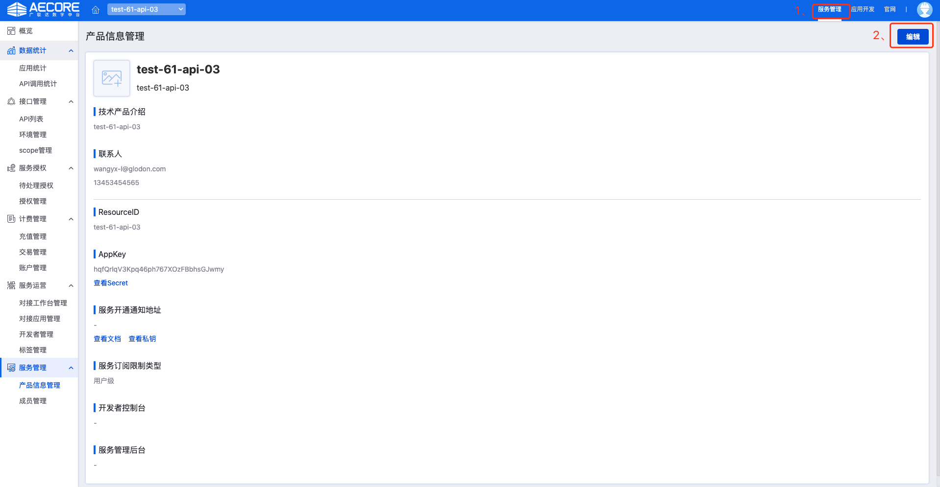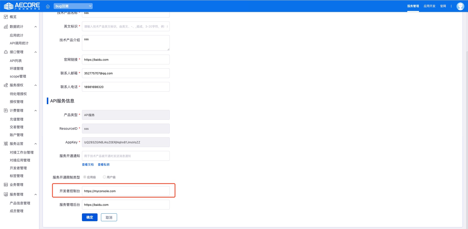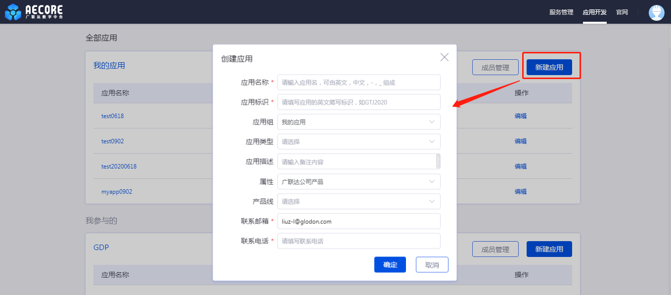 1)登录AECORE,导航栏选择并进入服务管理,填写服务基本信息。