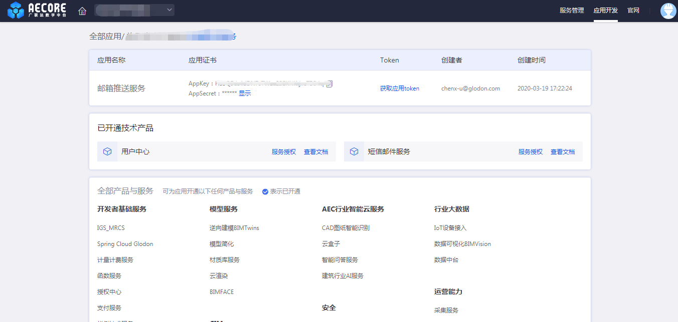服务注册步骤完成后,等待AECORE管理员在后台审核并发布服务。服务发布后即会出现在ISV控制台,所有的开发者可以通过AECORE调用该服务。