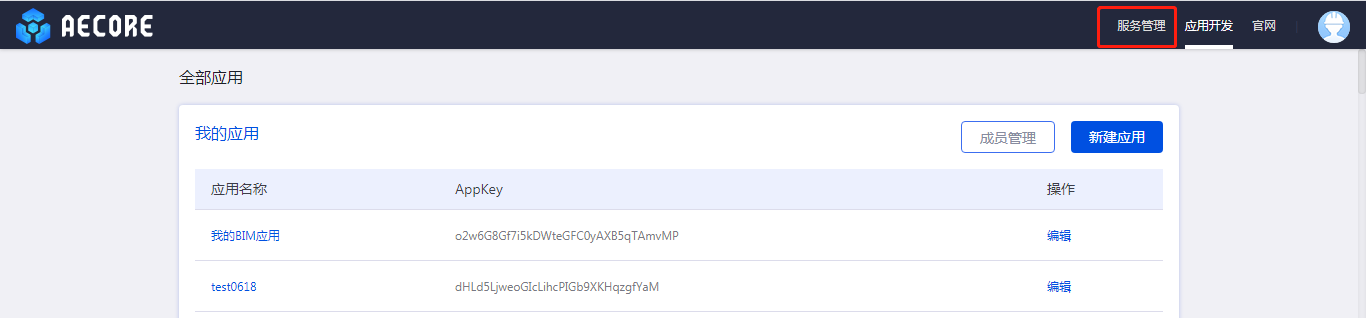 前提:该服务已在AECORE上发布(服务发布联系:刘卓liuz-l@hccszx.cn)