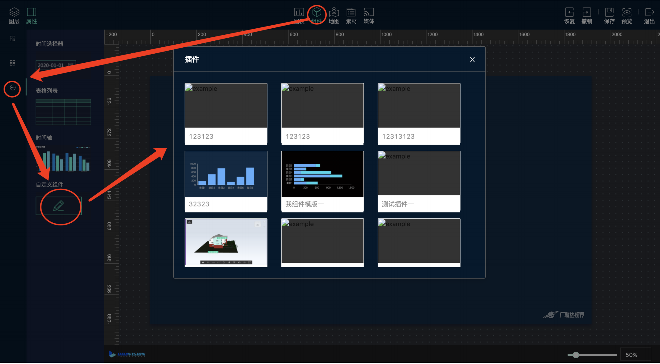 选中组件、其他、自定义组件!选择刚刚上传的插件!这样就可以直接使用刚刚上传的插件了!