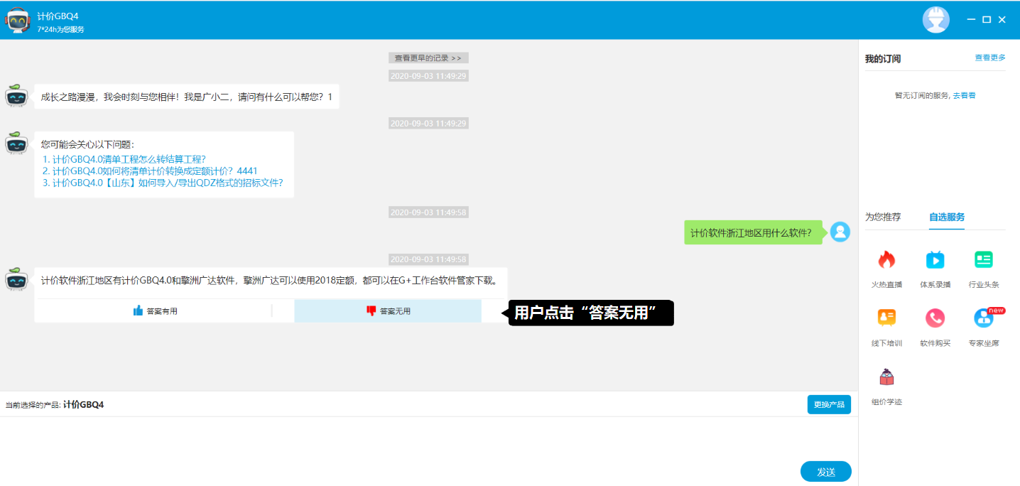 若判断用户问法对应的机器人回答的结果正确,则点击“正确”;