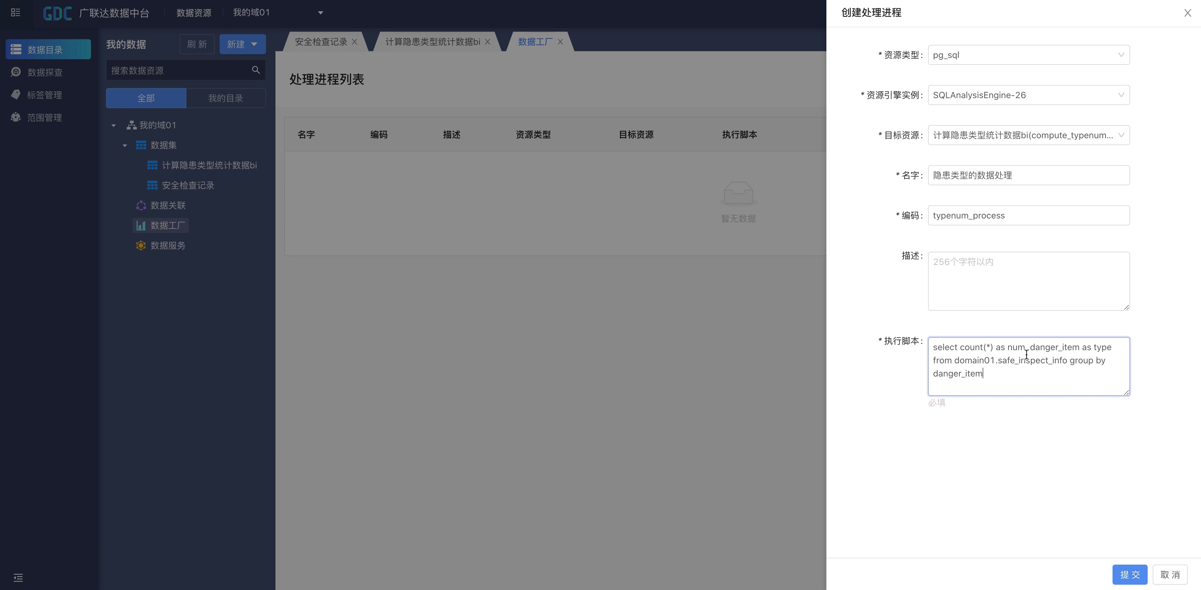 - 实时和离线的数据加工处理:支持SQL脚本对数据中台的数据进行实时或离线的加工处理。