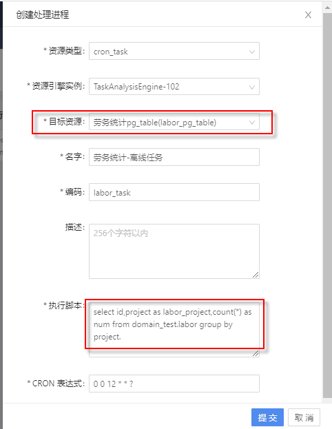 | 目标资源代码 | 只能是小写英文字母或者数字或者下划线,第一位必须是字母,最少2位,最多64位,例如 user_account |