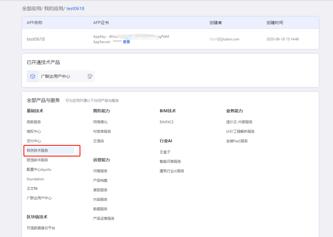 以开通“样例技术服务”为例,操作如下