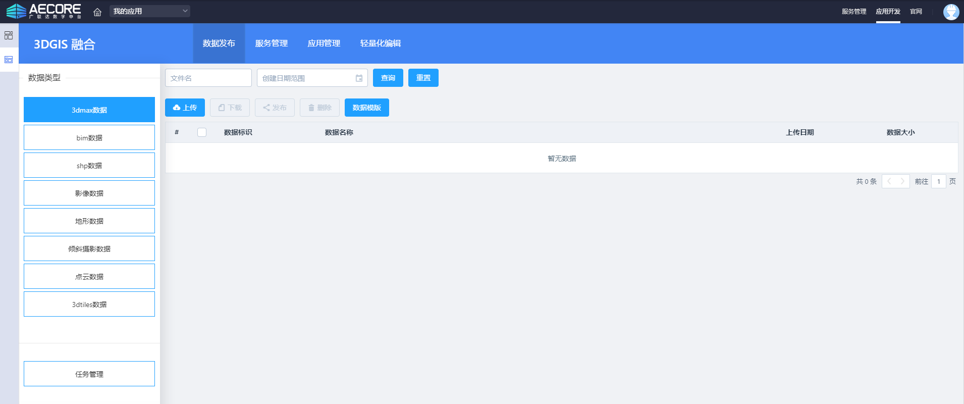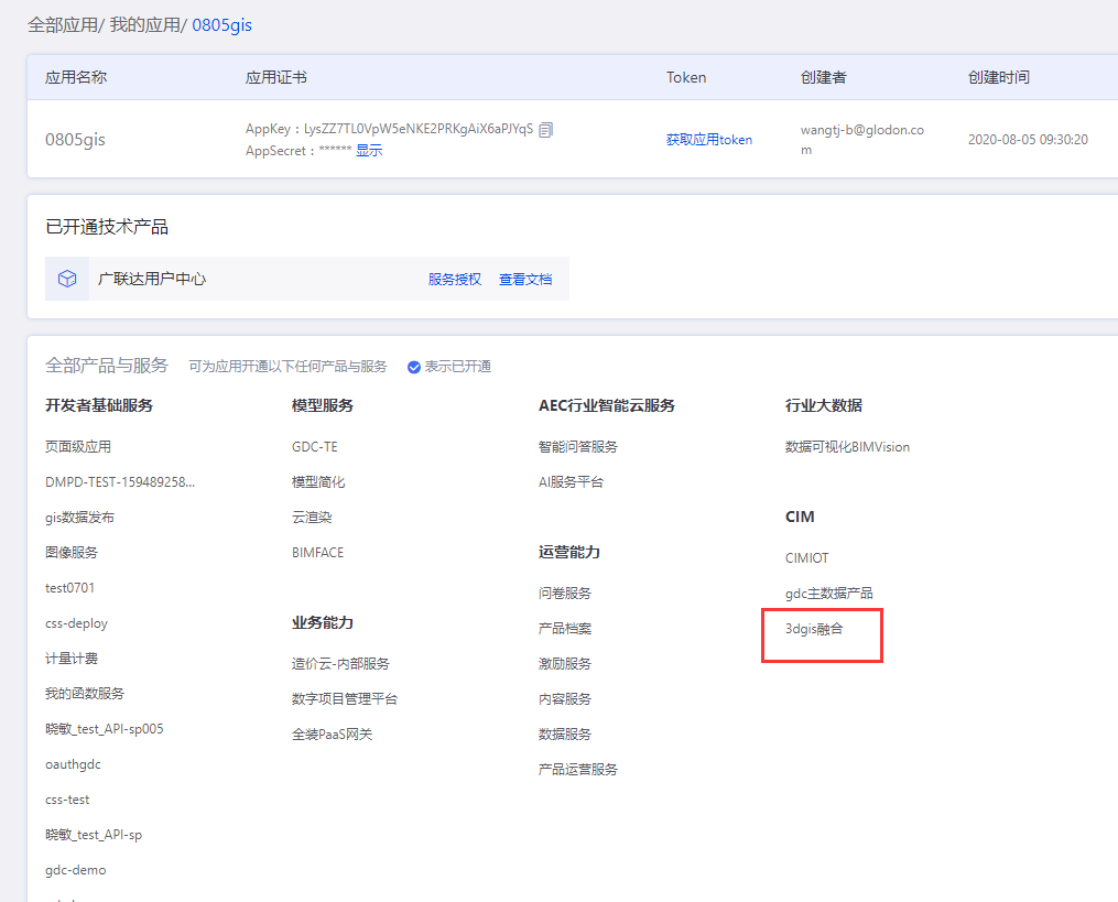 登录AECORE,并创建应用,创建应用后即可获取appkey、appsecert,这是调用服务的秘钥请妥善管理。