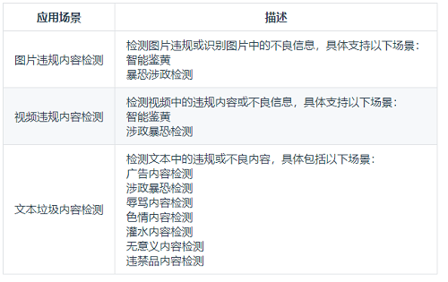 云安全技术部提供内容安全合规审查能力(包括文本内容、 图片、 视频等的审查),各部门产品端涉及的用户产生内容均应进行安全审核,本服务提供了文本内容、 图片、 视频的内容安全审核能力。
