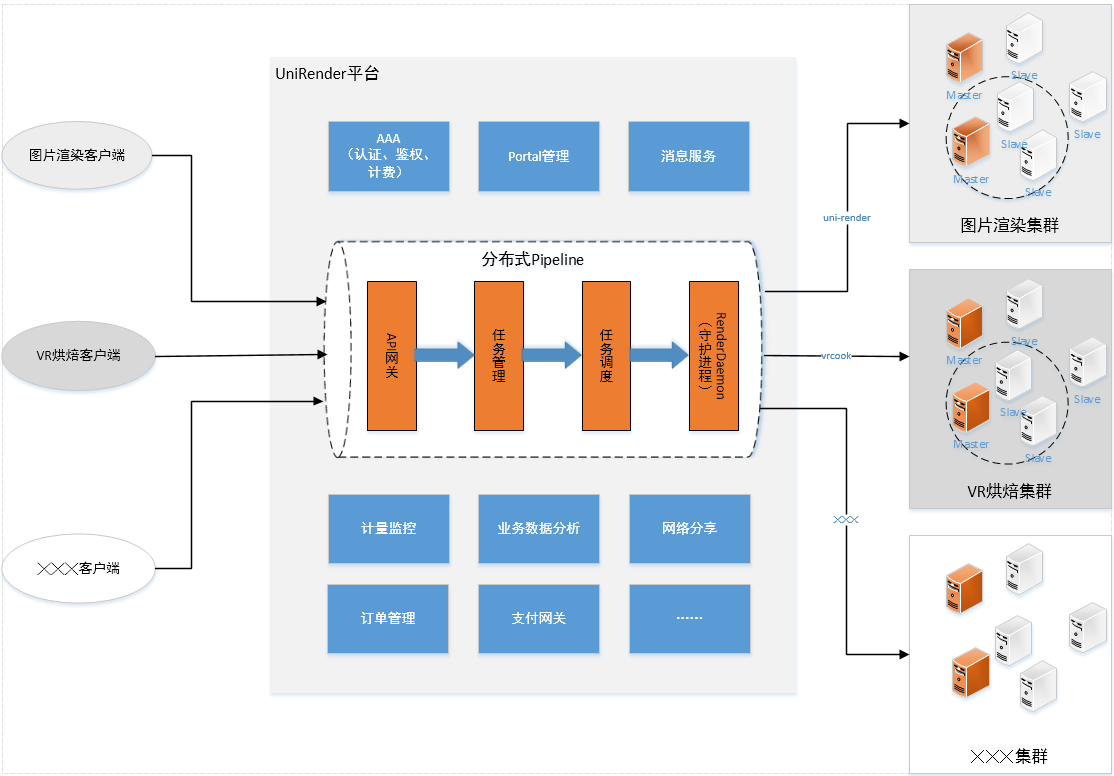 - 渲染业务数据云端管理。云端提供渲染业务数据的管理,用户在终端可以查看渲染进度,任务排序、任务暂停、取消和重启等等。